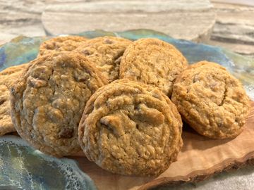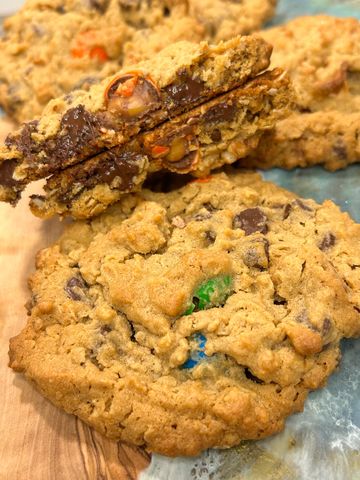 Peanut Butter and Oatmeal Cookies, with Chocolate Chips and Caramel Cold Brew M&Ms.